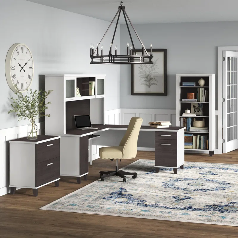 I chose to buy a four-piece office set. The best thing about this furniture is that it came in one piece and so that way I did not have to run around looking for matching pair of furniture. Beneath it, I layered an indoor carpet to place my furniture on. Carpets or rugs look aesthetic.